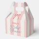 This coquette baby shower favor box features a red bow on a cream background with pink stripes. Personalize it for your needs. You can find matching products at my store.