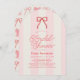 Red Bow & Pink Stripes Bridal Shower Invitation