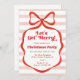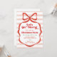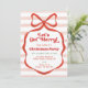 Red Bow Pink Stripes Trendy Christmas Party Invitation