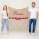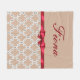 Red Bow Ribbon and White Quatrefoils Monogram Fleece Blanket