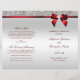 Beautiful wedding ceremony program with a beautiful sparkly printed glitter, rhinestones, sequins pattern and shiny printed vector diamond bow and ribbon and red text. I have matching products in my store. Text, font and colours of font are all customisable to meet your needs. If you need assistance customising your product please contact me through my store. Please note: These are flat printed graphics - no raised parts. The programs will arrive flat and will require folding to assemble.