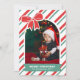 Personalize with jolly and fun photo Christmas card with a Christmas themed photo on the front, and 12 photos on the back for a year in review collage! The card features a charming design with hand-drawn elements for a whimsical look. Personalize with a family photo in an arch shape against peppermint stripes in red and green. Merry Christmas is written beneath on a simple hand-drawn ribbon, avoiding perfect lines for a more hand-made vibe even if the cards are printed.