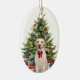 On the front of this Holiday ornament is the image of a beautiful yellow Labrador Retriever dog wearing a festive red bow. The dog sits in front of a decorated Holiday tree. On the back, red and green text says MERRY CHRISTMAS", and there are additional text fields for you to customise. Make it say whatever you'd like!