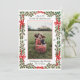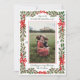 Send a warm message of Christmas holiday cheer to friends and family with this luxe photo card featuring your best portrait orientation photograph, framed by a delicate red border and wrapped with an illustrated garland of holly leaves and red berries that is tied at the top and sides with charming curled ribbons and looping bows. The script fonts add to the elegance and provide ample space to personalise the greeting with your own message of cheer for the season. Easy to customise text on the backer echoes the style of the front but leaves space for a much longer message to update your loved ones with what's happened and how your family has been blessed throughout the year.
