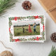 Send a warm message of Christmas holiday cheer to friends and family with this luxe photo card featuring your best horizontal, landscape orientation photograph, framed by a delicate red border and wrapped with an illustrated garland of holly leaves and red berries that is tied at the top and sides with charming curled ribbons and looping bows. The script fonts add to the elegance and provide ample space to personalise the greeting with your own message of cheer for the season. Easy to customise text on the backer echoes the style of the front but leaves space for a much longer message to update your loved ones with what's happened and how your family has been blessed throughout the year.