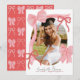 This coquette graduation announcement features your photo surrounded by a hand-drawn red bows. The reverse side features a red background with a bow pattern. Personalize it for your needs. You can find matching products at my store.