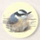 This coaster is decorated with a Red-breasted Nuthatch who looks like he is taking charge! He is a very small bird with a rust coloured breast, blue-grey back and a black eye stripe. His head and beak are very large in proportion to his body.