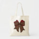 Red + Brown Checkered + Faux Glitter Bow Tote Bag