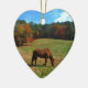 Red Brown horse, fall trees, blue skies Ceramic Tree Decoration