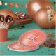 Easily personalise this trendy chic paper plate design featuring pretty red sparkling glitter on a brushed metallic background.