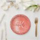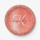 Red Brushed Metal Glitter Monogram Name Paper Plate