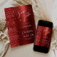 This elegant modern wedding save the date card features a red brushed metal background decorated with faux diamond glitter. The customizable text combines white script and sans serif fonts. The reverse side repeats the red brushed metal and glitter design.