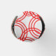 This bottle cooler has a mid-century modern design of red concentric circles scattered about the whole design.