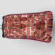 Printed clear red, seeming bubbles upon grid or leaning brick effect, but the image that looks like bubbles is under another image semi-transparent. With effect of illusion which can cause the perception of something metallic illuminated or bright.