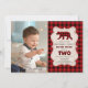 Charming card design featuring red buffalo plaid as background, a beautiful craft paper shape with a dotted frame, TWO script and bear with red buffalo overlay effect, and your loved one photo to be added. This is a template so you can replace this photo easily and add your info. More option and matching items in my Lumberjack Photo Birthday Collection.