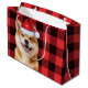 Red Buffalo Plaid Akita Dog Holiday Large Gift Bag