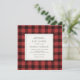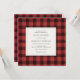 Baby Shower invitation featuring a classic red buffalo plaid background. These trendy invitations are perfect for a rustic baby shower. Customise with your information for the mum to be. Click "click to customise further" to change the font style, size, or colour.