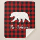 Red Buffalo Plaid & Bear | Personal Name Gift Sherpa Blanket