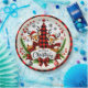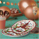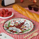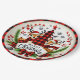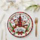 A Cute Merry Christmas Red And Black Buffalo Plaid Round Party Paper Plate With Tree And Two Cute Deer