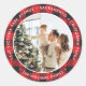 Create unique Christmas return address labels featuring a red and black buffalo plaid background. Easily personalise these red chequered Christmas labels with your name, address, and a photo.