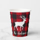 Red Buffalo Plaid & Reindeer | Personal Name Gift Paper Cups