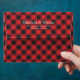 Red buffalo plaid floral envelopes with a return address featuring sunflower flowers and string lights on a red chequered background. Matching items available.