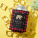 Red Buffalo Plaid With Bear Family Name Can Cooler