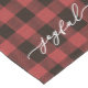 Red buffalo plaid table runner with festive joyful script.