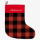Red Buffalo Plaid With Name Large Christmas Stocking