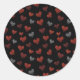 Red Burgundy Silver Glitter Hearts on Black Classic Round Sticker