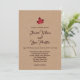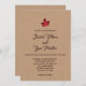 A classic red maple leaf accents this traditional wedding invitation, making it perfect for a rustic or fall wedding. It is shown on the basic paper; however, I recommend the weight and texture of the linen paper that coordinates well with the burlap look of the paper.