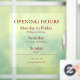 Make your business hours clear and stylish with this customizable Window Cling! Perfect for storefront doors and windows, this reusable cling displays your opening hours with a clean, professional design that catches the eye. Easy to apply and remove without residue — ideal for shops, cafes, salons, and offices.