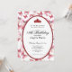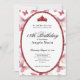 This elegant red and white 18th birthday invitation has red butterflies, a red tiara crown, and a red glitter oval with a personalizable template to create your own message. The invitation template is customizable in the listing editor and is also available as a digital download that's printable after you personalize it. It's a classic style that's perfect for a family event to celebrate a milestone birthday.