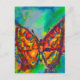 RED BUTTERFLY IN BLUE GREEN TEAL GOLD SPARKLES POSTCARD