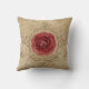 A red cabbage rose in the centre of an antique style frame on a dark beige aged background throw pillow. A versatile and gorgeous accent pillow for any room of the house.