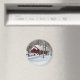 Fresh snow blankets a little red cabin in aspen woods. Add this pretty winter scene to a refrigerator door or any steel surface. Makes a great small holiday gift or party favour.