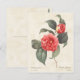 Postcard with a digitally cleaned and enhanced vintage botanical image of a red camellia on a light gold parchment background. Illustrated by renowned Belgian painter and botanist Pierre-Joseph Redouté for Choix des Plus Belles Fleurs et des Plus Beaux Fruits, published in Paris in 1833. Manuscript captions reproduced in original placement and similar fonts.
