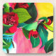 From an original watercolour painting of red camellia flowers with green foliage by artist Sacha Grossel. These flowers are colorful, vibrant and bright and this floral art colorful botanical design would look beautiful on any accessory or product.