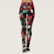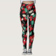 RED CAMELLIAS,WHITE GREEN LEAVES BLACK Floral Leggings
