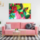 From an original watercolour art painting of red camellia flowers with green foliage by artist Sacha Grossel. These flowers are colourful, vibrant and bright and this floral art colourful botanical design would look beautiful in any environment. PInk and yellow vibrant background.