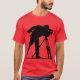 I give wanted to give this a 4 instead of a 5 because these Basic DARK T0shirts run unexpectedly SLIM or Narrow. Which is great if you do not have a potbelly, but I have a paunch. It isn't the shirt's fault that I've got a beer belly. The design and shirt itself is a quality cotton shirt. The color is more of a deep purple, but still a very pretty color. The Basic DARK T-shirts run a bit SLIMMER than the Basic Ts. The neck is a fraction narrower (or seems to be narrower) also. I'm a paunchy middle-aged woman and my neck is 12 inches (31cm) thick and the neckline fell about the same as in the photo of the man, and I had the desire to tug it a bit. So if you're a thick necked man or like loose shirts, be aware these are slimmer shirts. Once I get rid of my lockdown paunch it'll look great. The shirt washed well in cold water with no apparent bleeding. We don't have a dryer, so it hung dry. Did not shrink. Love the colors and the design. The design looks smaller on my shirt than it does on the model on-line. But still, it looks good on the shirt. The printing looks as it does on the model, just the size seems fractionally smaller. Washed garment in cold water, hung dry and design appeared unaffected.