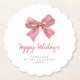 Red Candy Stripe Bow Personalized Holiday Party Paper Coaster