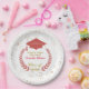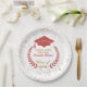Paper plates for that special high school or college graduation party with personalised text. Features image of a red grad cap and laurel wreath accented with faux gold confetti. See matching napkins and other colour groups also available in this same design