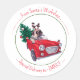 Red car and Christmas Tree & Happy dog Classic Round Sticker