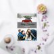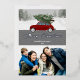Modern elegant holiday greeting card featuring a vintage old red car truck carrying a Christmas tree with white and grey zig zag chevron geometric design at the background. At the front it reads "Merry Christmas" in real foil hand lettered font. You can personalise this beautiful holiday card with your own family name, year and photo.
