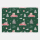 Red Car Winter Pattern Merry Christmas Green Wrapping Paper Sheet