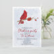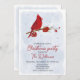 An invitation with a red cardinal and a holly berry is perfect for a Christmas party or other winter holiday.