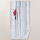 Red Cardinal Bird in beautiful snowy Birch Tree Beach Towel