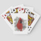 This deck of animal playing cards presents a red cardinal bird. He is truly the king of backyard songbirds! Here he is perched on a snowy rail eating black oil sunflower seeds while the winter snow swirls around him.