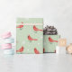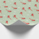 Red Cardinal Birds & White Snowflakes On Green Wrapping Paper